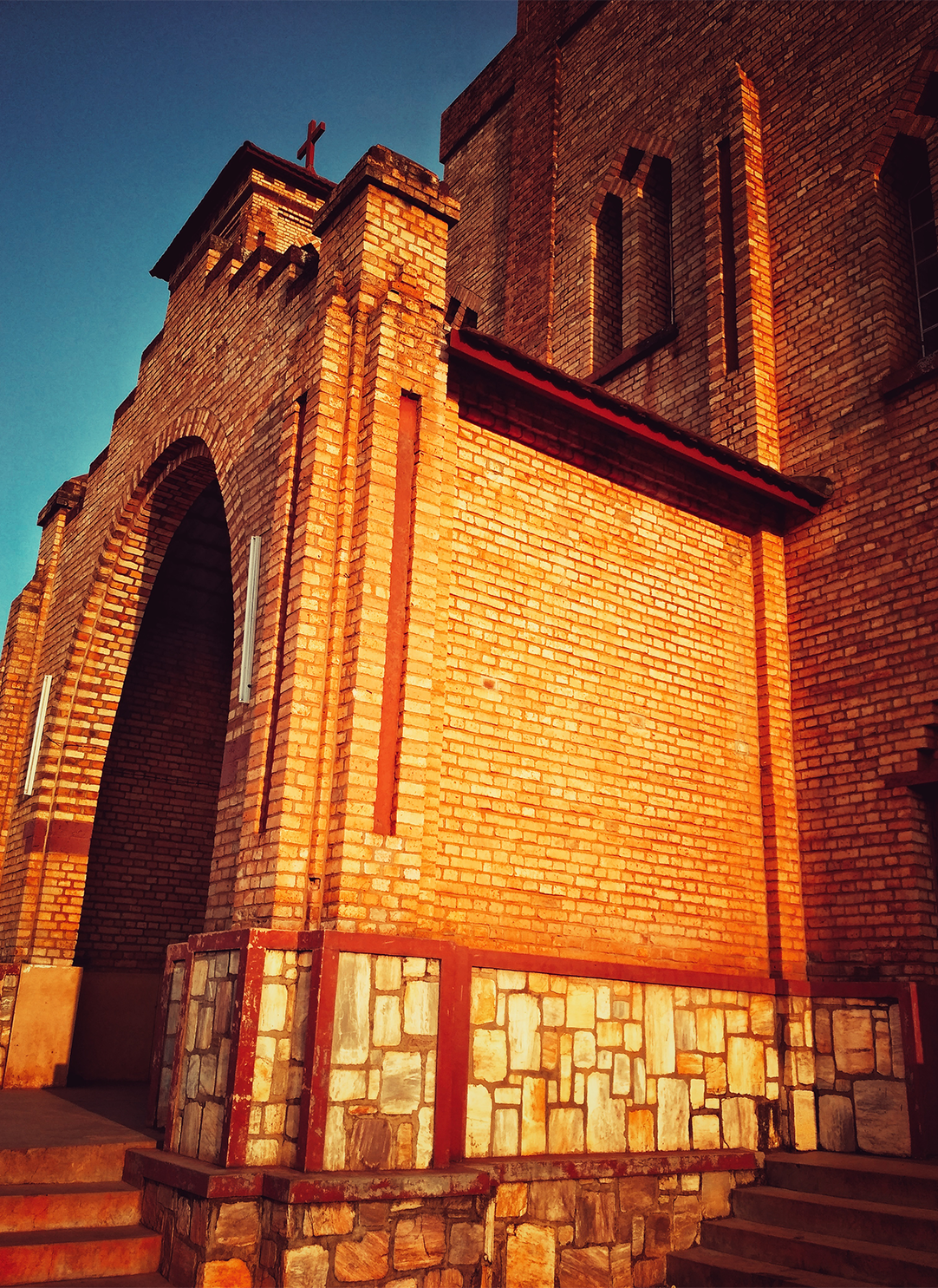 It was evening when we got there. The sun’s pounding rays of heat had abated and were falling into the cathedral’s heavily dyed frosted window panes in such breathtaking strikes, I couldn’t help imagining what a moving experience Mass would be there.