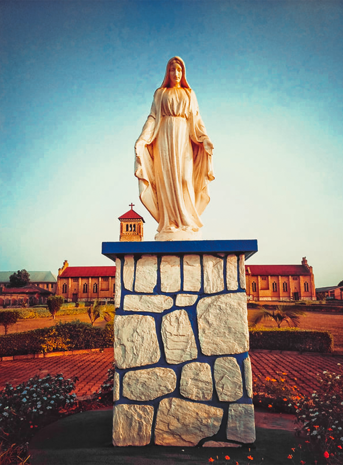 This was huge. And true to it, had red bricks. The road leading to it was red as well, made up of layers of fine particles of loam. Cathédrale Notre-Dame de la Sagesse (Our Lady of Wisdom) is the name. Built in memory of the life of Princess Astrid of Sweden, Queen consort of the Belgians, in the late 1930s, it is the largest religious structure in Rwanda.